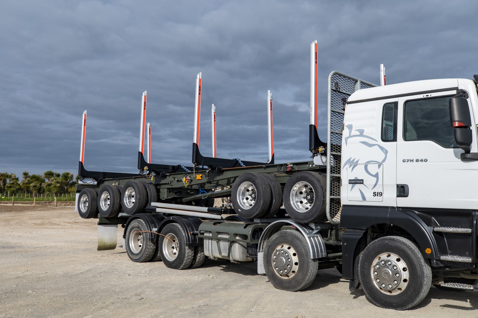 Ready to Work low mileage logging truck and brand-new Evans logging trailer.